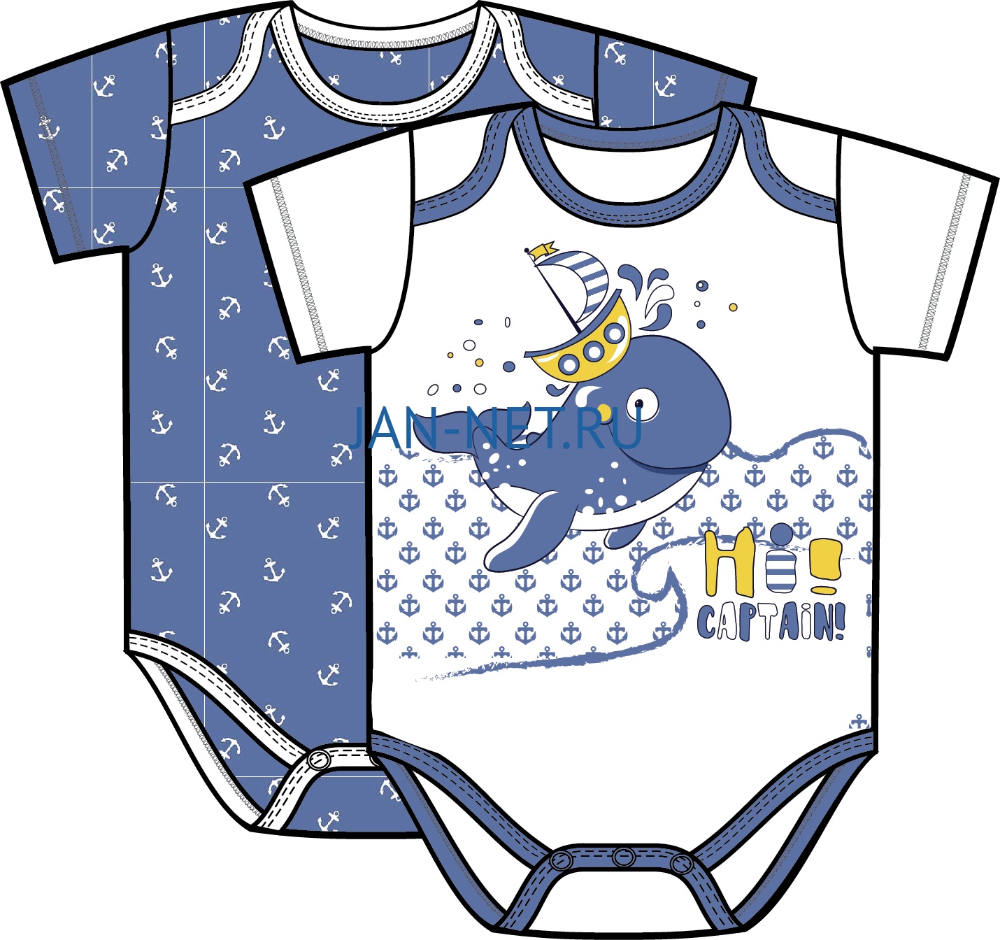 160 Боди короткий рукав "Капитан"(кулир) 2 шт в уп.р.68-44 Якоря_Боди1 Ж160 180,00