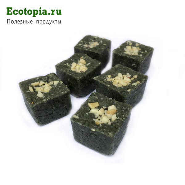 Состав: кешью, спирулина, мята, кардамон, тростниковый сахар, кокосовая стружка, кокосовое масло, вода.