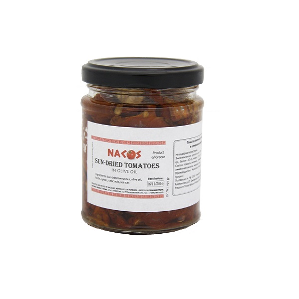 Состав: томаты вяленые, оливковое масло, травы, специи, винный уксус, морская соль.