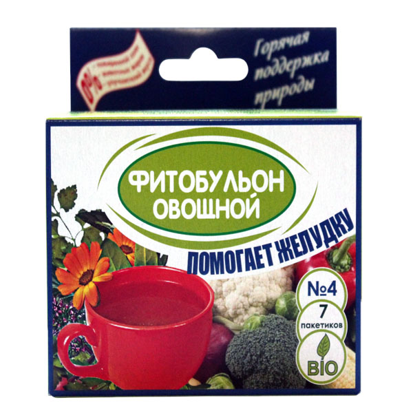 Способ употребления: Содержимое пакетика растворить в 250 мл горячей воды, настоять 3-5 минут, фитобульон готов.
