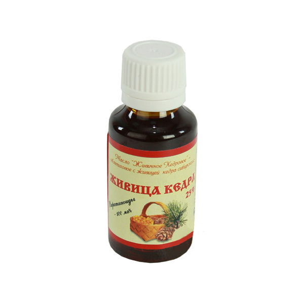 Живица кедра в облепиховом масле в 25% концентрации используется в основном наружно, для нанесения на кожу. Ее противомикробное действие направлено на скорейшее заживление и регенерацию тканей.