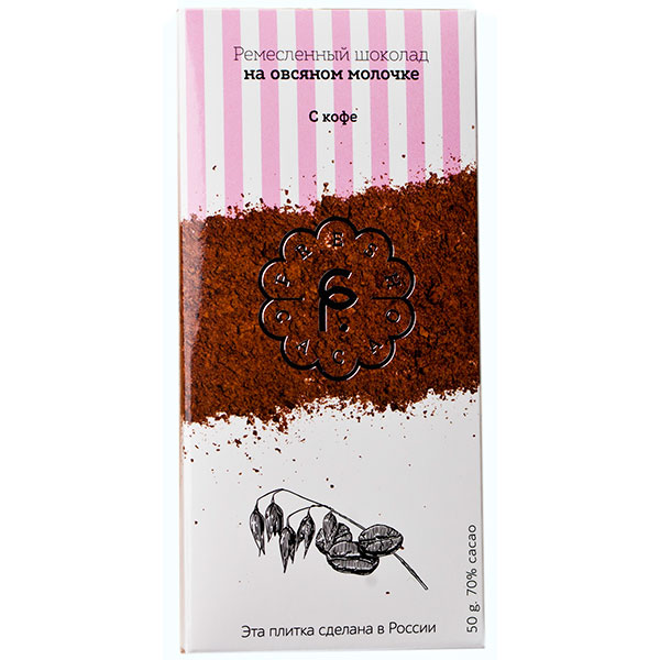 Состав: какао натуральное 50%, масло какао натуральное, тростниковый сахар 30%, овсяное толокно, молотый кофе натуральный.