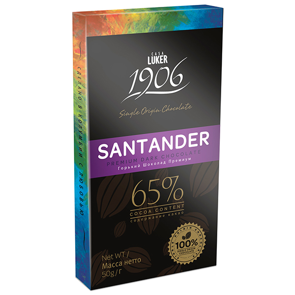 Вкус горького шоколада Casa Luker SANTANDER отражает атмосферу горного хребта, являющегося крупным межокеанским разделом. Также и в плитке сочетаются противоположные нотки: сладость и горечь. К ним добавлены фруктовые, пряные оттенки. Шоколад получился поистине оригинальный, его рецептура проверена на протяжении столетия.