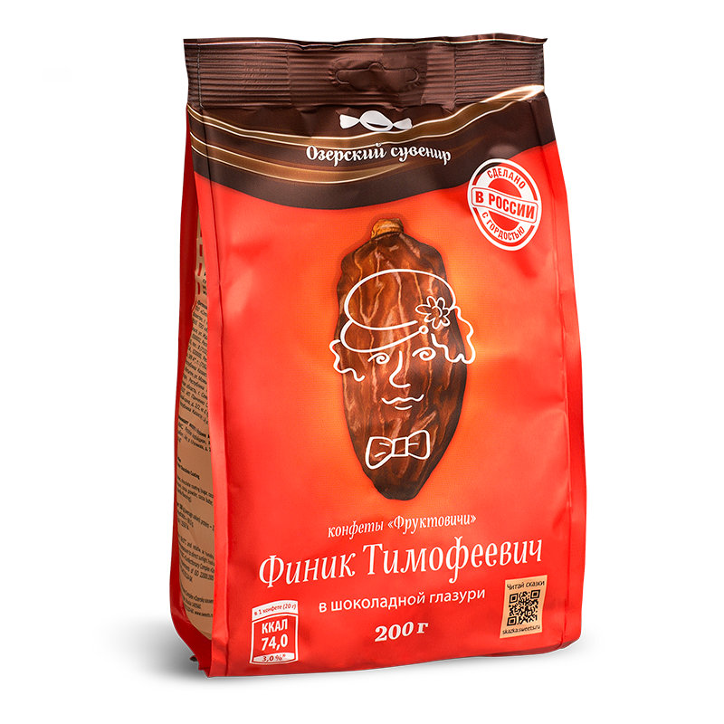 Есть легенда, будто в финике содержатся все необходимые для жизни вещества и жить можно, питаясь исключительно финиками. Мы не советуем проверять этот миф на себе, но если Вы вдруг оказались в бесплодной пустыне с упаковкой конфет <<Финик Тимофеевич>>, то всё, что Вам останется сделать -- это найти воду, ведь энергии с нашими конфетами будет хоть отбавляй!