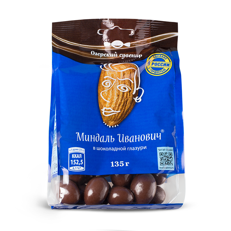 За пользу, красоту, нежный вкус и аромат миндаль называют . Искусные кондитеры создают с помощью миндаля восхитительные лакомства. -- из таких шедевров: российский король конфет. Цельный калифорнийский миндаль покрыт шоколадной глазурью, тонкий аромат и нежный вкус запомнятся и понравятся взрослым и детям. Миндаль полезен благодаря богатому содержанию кальция, витамина Е, фосфора, магния и фолиевой кислоты.