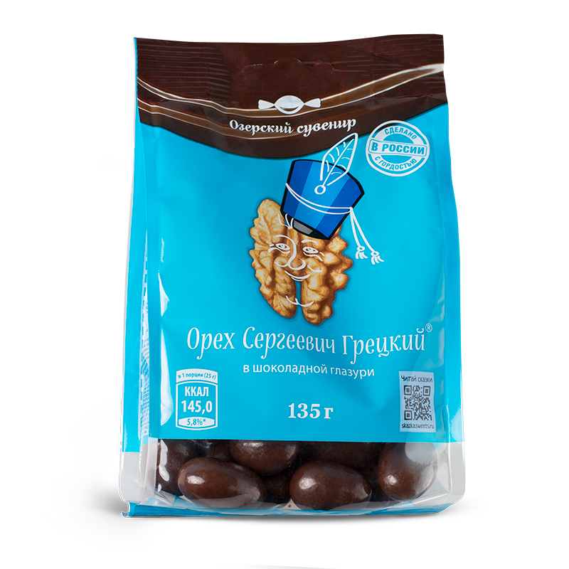 Полезные свойства и нежный вкус намекнули кондитерам покрыть орех шоколадной глазурью. Так и появился -- конфета и вкусная, и полезная для детей и взрослых. Орешек питателен, содержит много клетчатки, витамины А, В, С, Е, йод и железо. Шоколад поднимает настроение и заряжает бодростью. Такое лакомство укрепит иммунитет и снимет усталость.