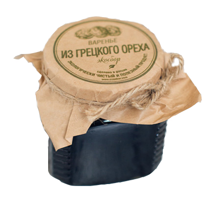 Состав: грецкие орехи - 40%, сахар - 40%, вода - 20%, гвоздика, лимон.