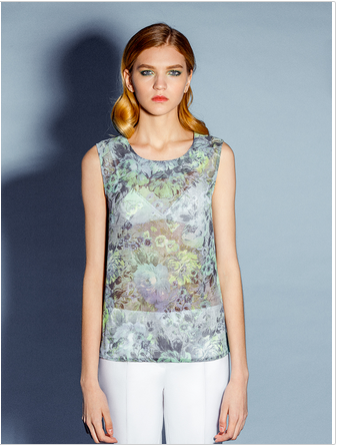 Блузка - топ прямого силуэта, без застежки. По боковым швам внизу разрезы дл. 6 см.