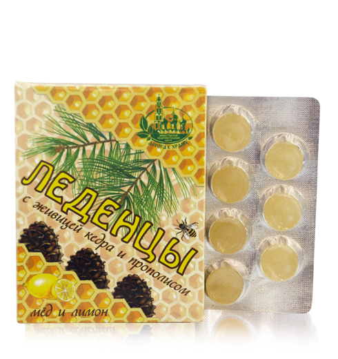 Натуральные леденцы с целебной живицей кедровой, медом, прополисом и витамином С - это мощный растительный антисептический, противовоспалительный, обеззараживающий, обезболивающий комплекс, а также быстрый и удобный способ укрепить иммунитет, повысить сопротивляемость организма внешним инфекциям. Леденцы помогают снизить боль в горле при ангине и тонзиллите, облегчить носовое дыхание при заложенности и насморке. Все растительные компоненты состава, собираемые в экологически чистых районах Сибири и Алтая, проходят обязательную радиологическую экспертизу. При производстве используется уникальная технология, позволяющая сохранить максимум полезных свойств растительного сырья. Удобная форма в виде пастилок для рассасывания делает леденцы отличным вспомогательным средством для всей семьи в борьбе с вирусами и защите организма в период эпидемиологической опасности.
