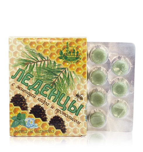 Мята и ментол в сочетание с целебной силой живицы кедровой, меда и прополиса эффективно и бережно помогают в борьбе с простудными симптомами - болью в горле, заложенностью носа. Леденцы представляют собой полностью растительный, экологически чистый комплекс. Это делает использование пастилок безопасным для всей семьи. Леденцы <<Мята и ментол>> не только облегчают боль в горле и устраняют заложенность носа, но и оказывают положительное действие на укрепление как местного, так и общего иммунитета. Освежают дыхание. Растительные компоненты пастилок (живца кедровая, мед, прополис), собираемые в экологически чистых районах Сибири и Алтая, прошли обязательную проверку качества и радиологический контроль.При производстве леденцов используется уникальная технология, позволяющая сохранить максимум полезных свойств растительных ингредиентов состава.