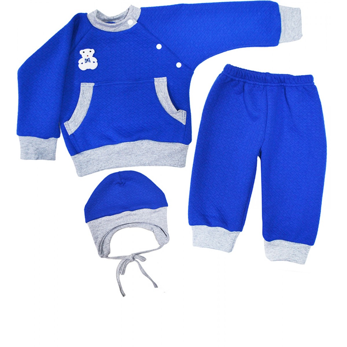 Костюм из капитония из трёх предметов с забавным названием <<Капитошка>> от MODESTREET . Капитоний имеет тканевую основу 100% хлопок, между слоями которой простеган тонкий слой утеплителя (100% п/э). Натуральная, теплая ткань, приятная телу малышей