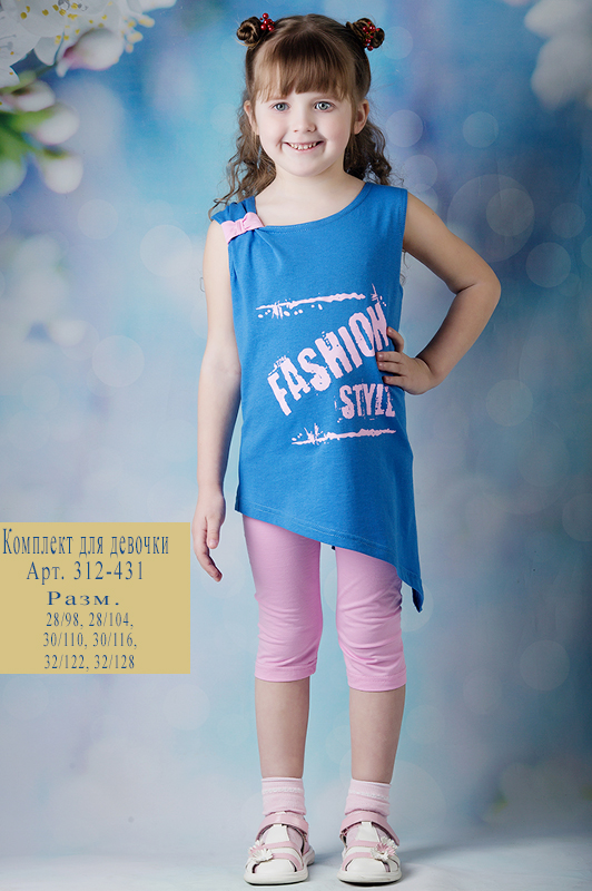 Описание: Удлиненая туника (с ассиметричным низом, по спинке декоративные вставки в виде бантов, печать по переду изделия) и удлиненные бриджи.