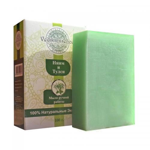 Кокосовое масло первого отжима, Сорбитол, Масло кастровое, Миристиновая кислота, Стеариновая кислота, Кокамидопропил бетаин, Глицерин, Тулси эфирное масло, Ним.