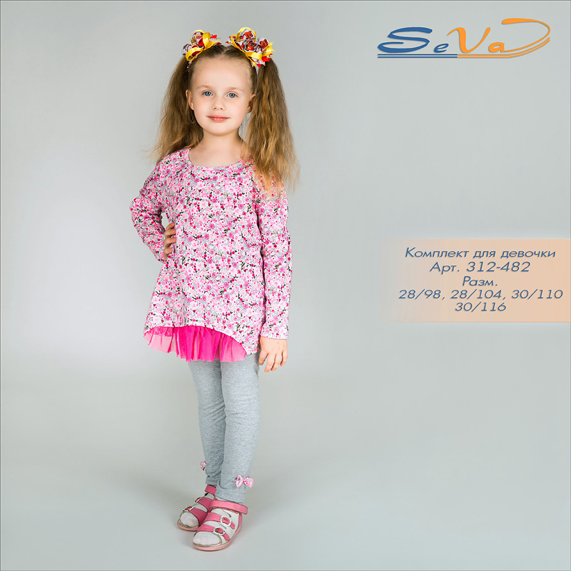 Описание: Туника с отделкой сеткой и леггинсы с бантиками.