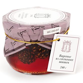 Состав: сосновые шишки, вода, сахар. Пищевая ценность: белки - 0 гр, жиры - 0 гр, углеводы - 70 гр. Энергетическая ценность: 280 кКал.