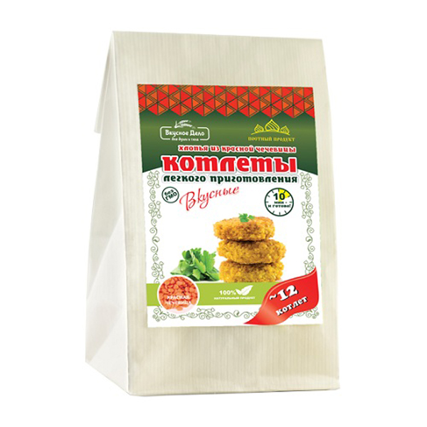 Состав: хлопья натуральные из красной чечевицы, хлопья ячменя, панировка из чечевицы, соль, чеснок, куркума, черный перец.