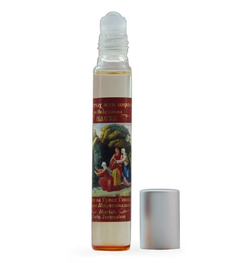 Миро святых Жен-Мироносиц <<Пасха>> изготовлено по восстановленному рецепту Евангельского мира с добавлением елея (масла из лампады) от Гроба Господня в Иерусалиме. Освящено благодатью Святой Земли.