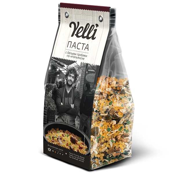 Состав: паста (мука пшеничная, вода), грибы белые сушеные, овощи и зелень сушеные (лук репчатый, лук зеленый, чеснок).