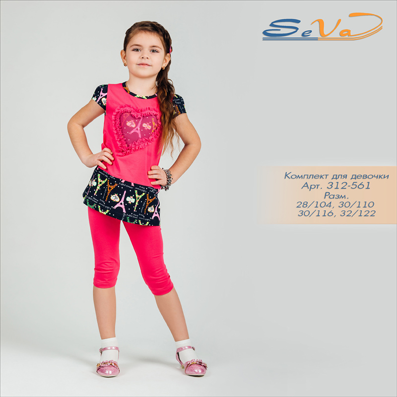 Яркий летний комплект для девочки выполнен из натуральной хлопковой ткани с добавлением лайкры. Комфортная и практичная модель!.