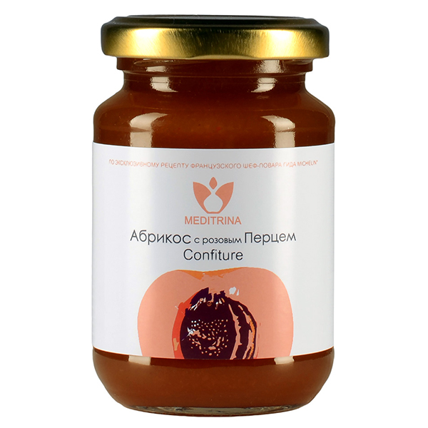 Состав: абрикос, розовый перец, агар-агар, сахар, лимонный сок, вода.