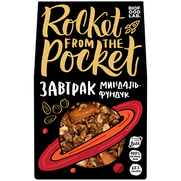 Гранола "Миндаль-Фундук" состоит из обжаренных злаковых хлопьев, орешков, семян полезных растений. Для аромата в нее добавлен мед и ванилин.