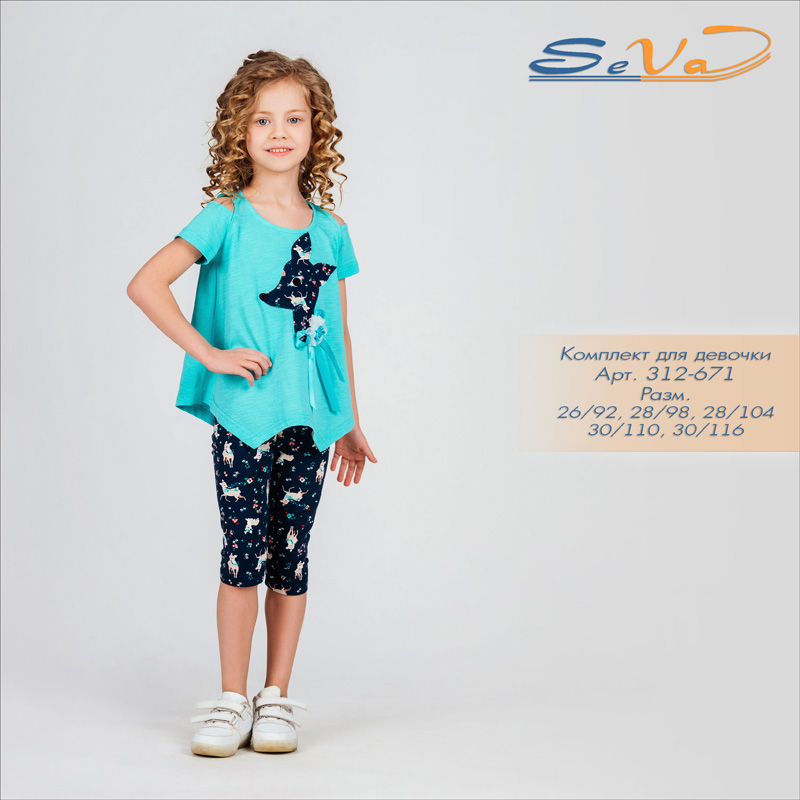 Стильный и яркий летний комплект для девочки! Апликация "Олень" на полочке.